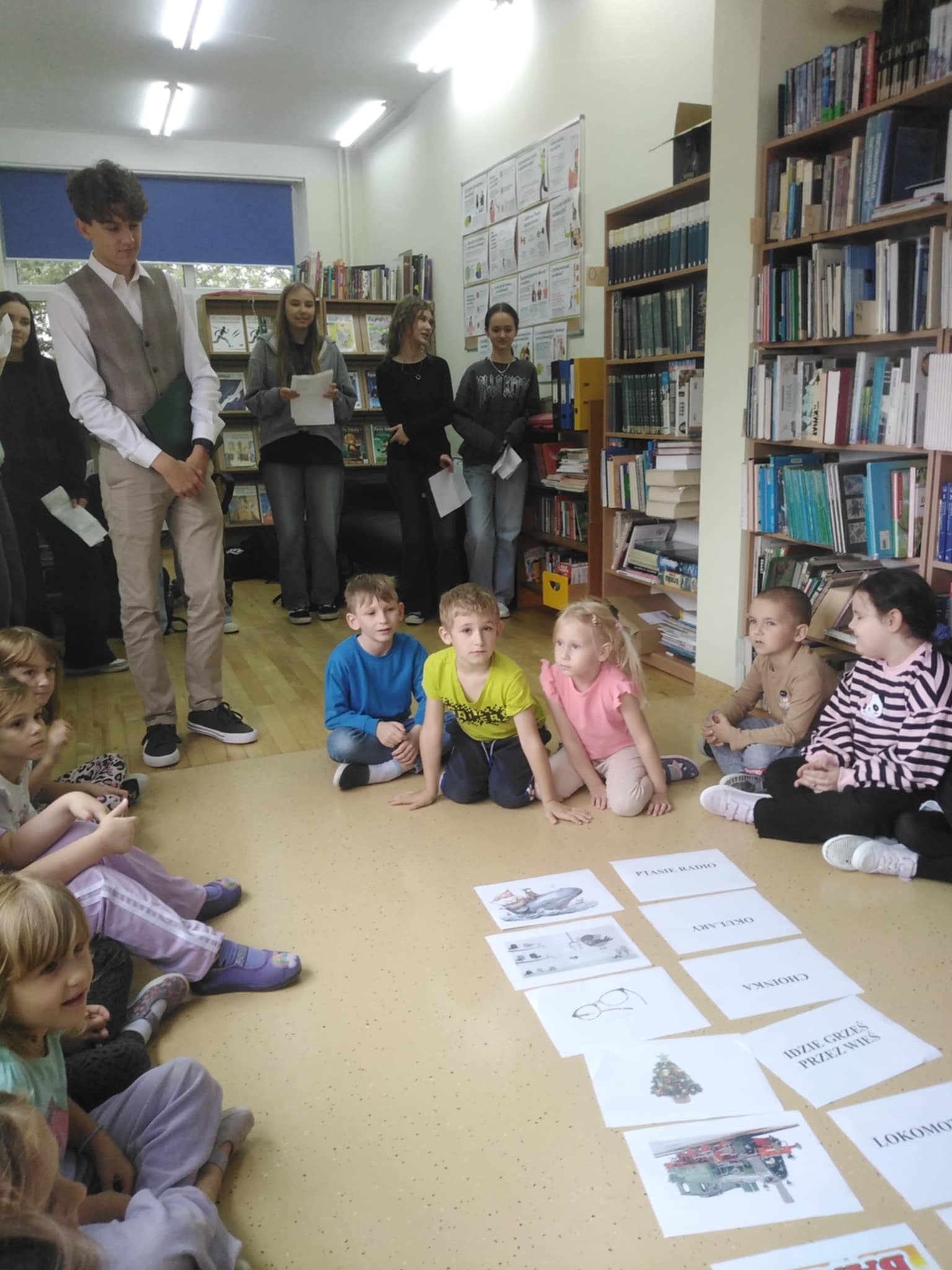 Podczas spotkania starsi koledzy i koleżanki czytali poezję Juliana Tuwima, wprowadzając ich w magiczny świat rymów i zabawnych historii. Jeden z uczniów wcielił się w rolę samego poety, dzięki czemu dzieci mogły nie tylko usłyszeć jego utwory, ale również poznać samego twórcę i jego literacki dorobek.